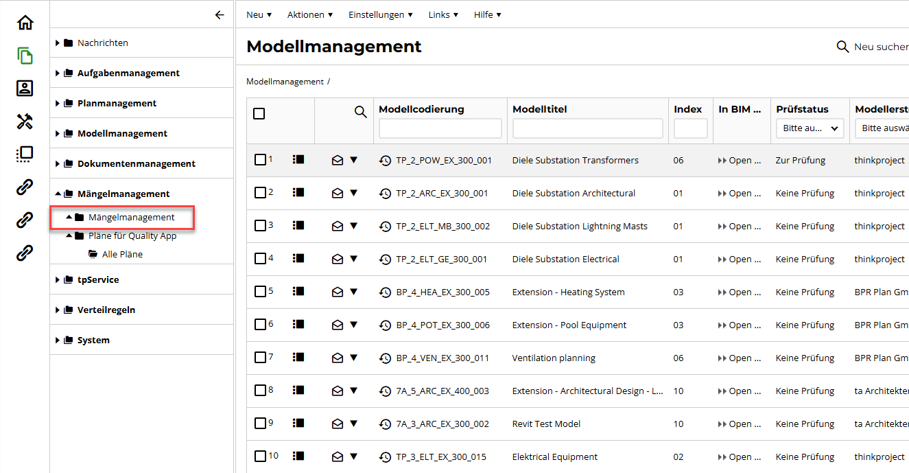 Ihre Rechte zur Einsichtnahme und die Aktionen, die Sie im Rahmen der Mangelaufnahme und -beseitigung ausführen können, hängen von der Rolle ab, die Ihnen im Projektraum zugewiesen wurde. Sie können von dieser Beschreibung abweichen und die Eingabefelder können wegen projektspezifischer Anpassungen anders benannt sein. Die Systematik bleibt jedoch gleich.