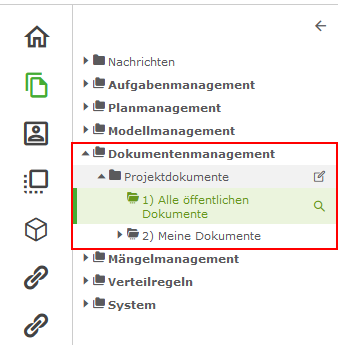1) Alle öffentlichen Dokumente: Alle Dokumente, die mit dem Status „öffentlich“ in den Projektraum hochgeladen wurden.
