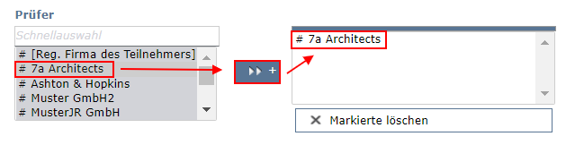 Die Teilnehmerauswahl besteht meist aus zwei Boxen. Hier können immer mehrere Teilnehmer gleichzeitig ausgewählt werden.