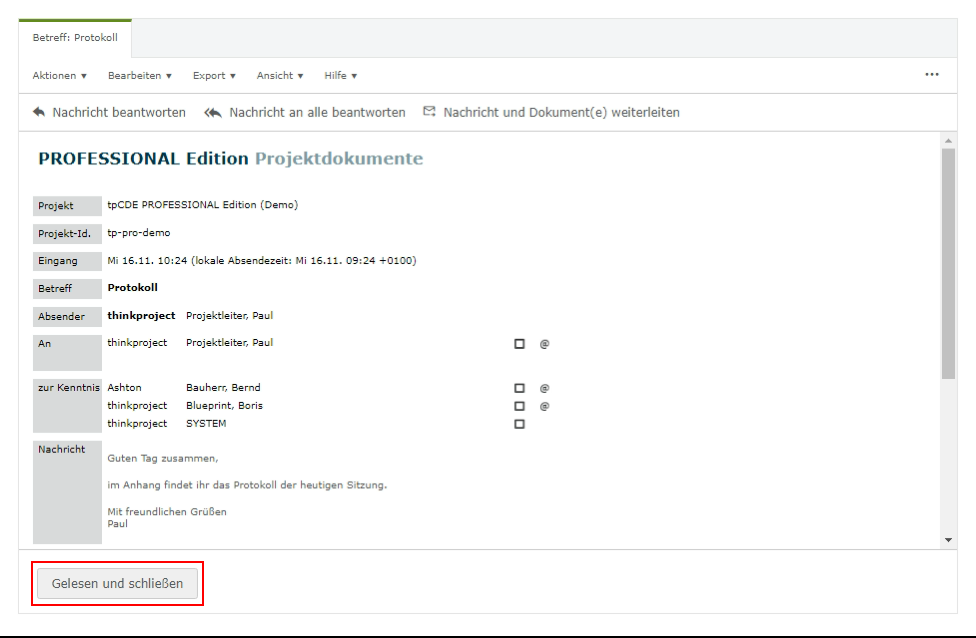Wählen Sie in der geöffneten Nachricht Gelesen und schließen.