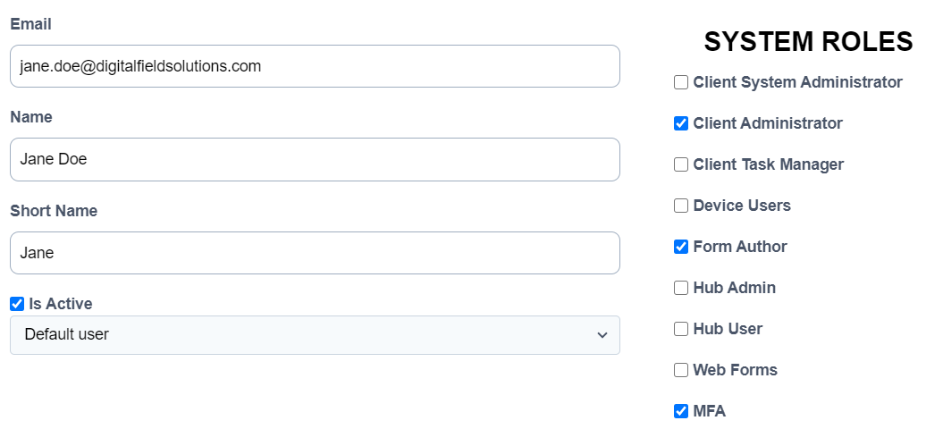 The User account that requires 2FA will now need to be updated on the Manage Users & Roles page. Select the User to display the Edit User screen, then the ‘MFA’ permission will need to be enabled.
