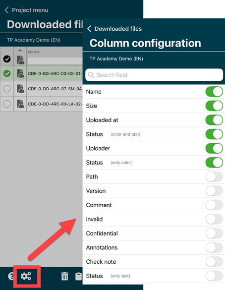 For a customizable view the different columns in the folder "Downloaded files" can be shown and hidden.