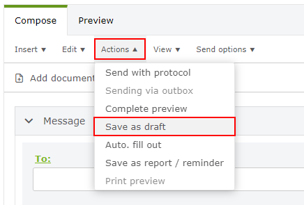 Messages that have already started can be saved and completed at a later point in time. An automatic backup takes place every 5 minutes. All automatically saved drafts older than 5 days are deleted once a day.