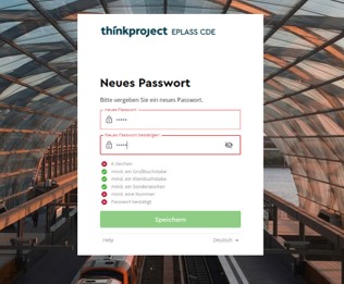 Nach erfolgreicher Verifizierung werden Sie im weiteren Dialog zur Vergabe Ihres persönlichen Passworts geführt. Das Passwort muss den entsprechenden Passwortrichtlinien Ihrer Organisation genügen, deren Kriterien für Sie im Dialog ebenfalls übersichtlich dargestellt werden:
