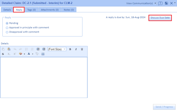 To discuss the due date, select the Discuss Due Date button on the right-hand side of the window:
