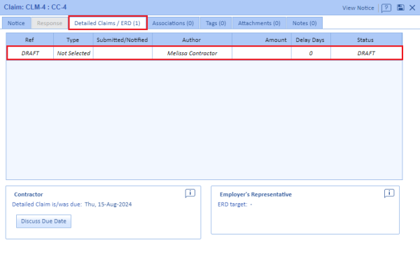i) Draft – the claim is yet to be communicated (only visible to the Contractor’s Party)
