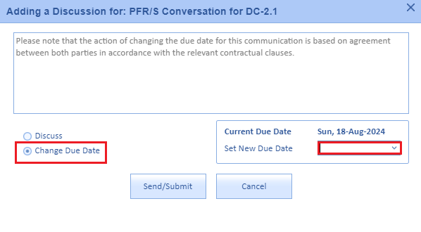 This will open a new window in which the Employer can select whether to discuss or change the due date:
