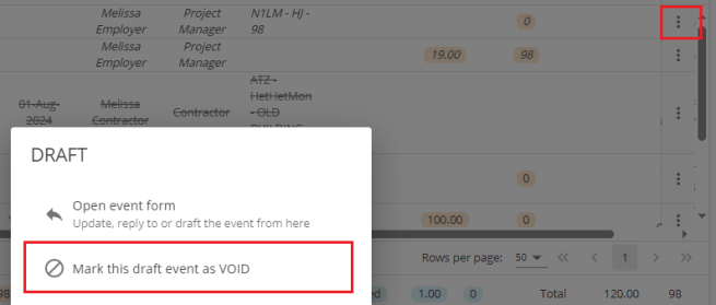 To void a draft event, select the three dots at the end of the CE, and select Mark this draft event as VOID on the pop-up: