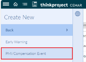 Navigate to the left-hand expandable menu and select Create New followed by PMI/Compensation Event:
