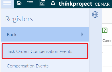 It is also possible to navigate to a list of TO compensation events within the Task Order
