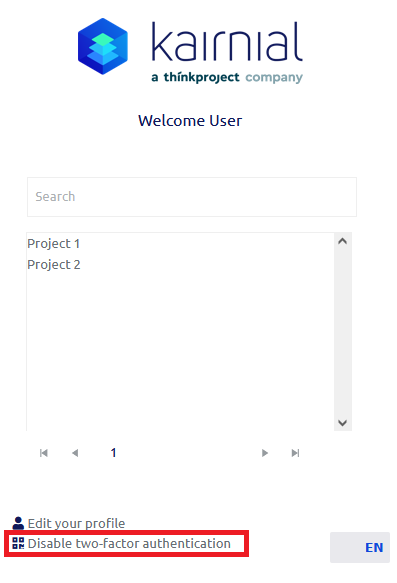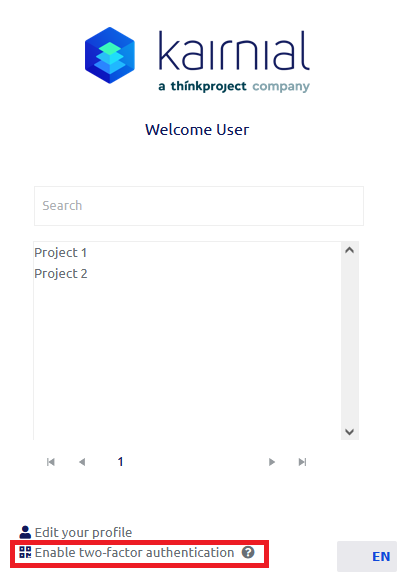 Under the project selection window, select Enable two-factor authentication.