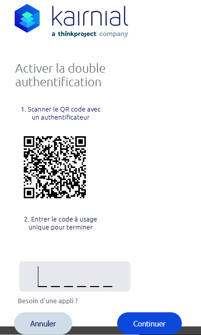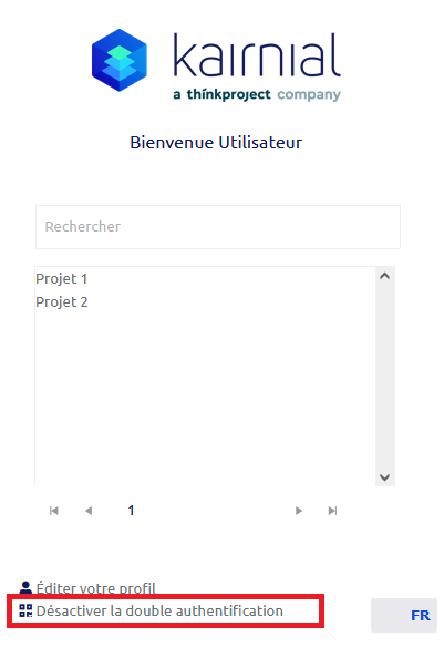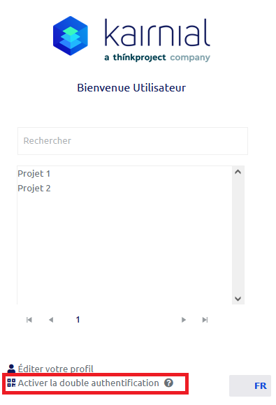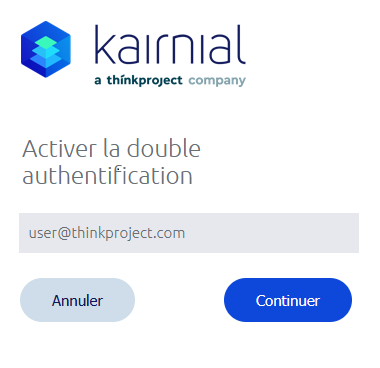 Sous la fenêtre de sélection de projet, sélectionnez Activer la double authentification.