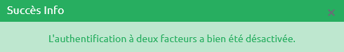Vous pouvez à tout moment désactiver l’authentification à deux facteurs en sélectionnant Désactiver la double authentification après vous être connecté.