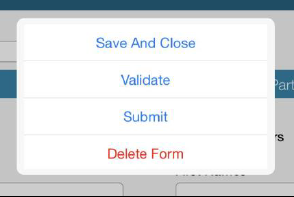 Validation is triggered by tapping either submit or validation on the action menu. The action menu is displayed by tapping the hamburger button in the top right hand corner of the screen.