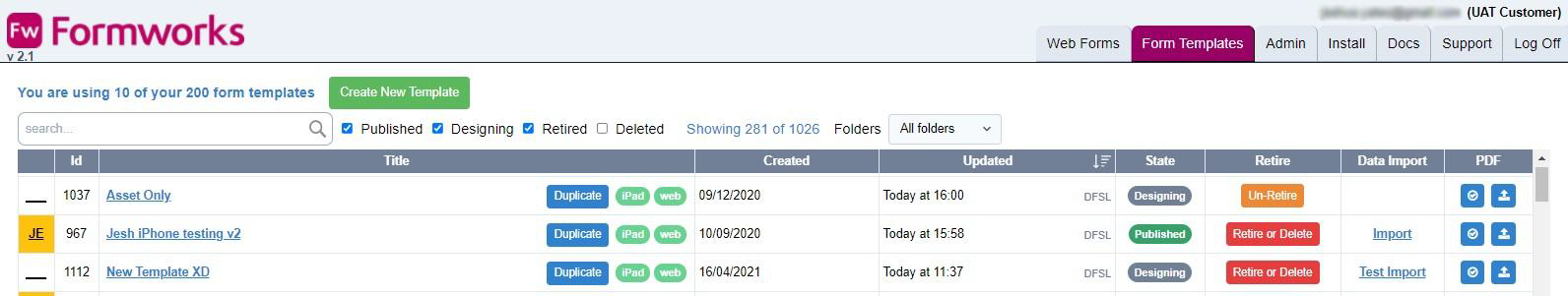 The purpose of this article is to explore the tabs available within the FORMS homepage. There are two main areas to the FORMS site, Form Templates and Admin. When you first login to FORMS, if you are a Form Author the Form Templates tab will display.