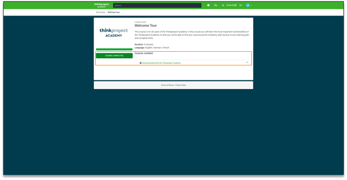 Once you complete a course, you'll see a visual indicator like a checkmark, or a Course Completed label next to the course title or within the course content.
