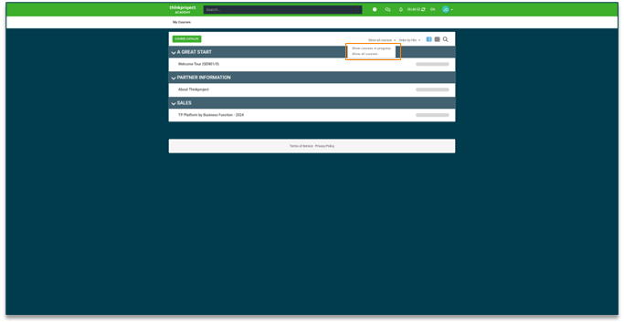 Show courses in progress: This filter will display only the courses you're currently enrolled in and haven't completed yet.