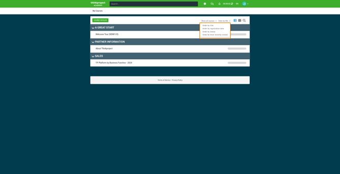 Order by status: Sorts courses by their completion status (in progress, completed, etc.).
