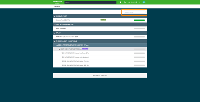 Type keywords (like course name or topic) into the search bar on the homepage.