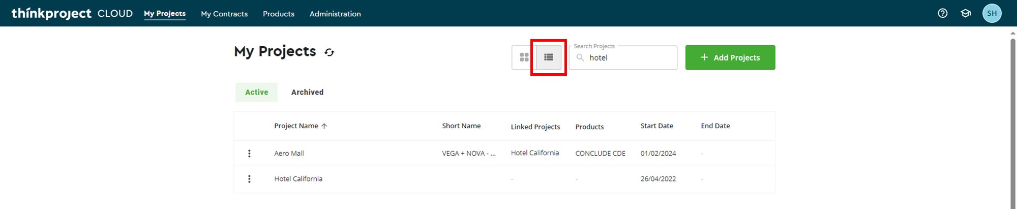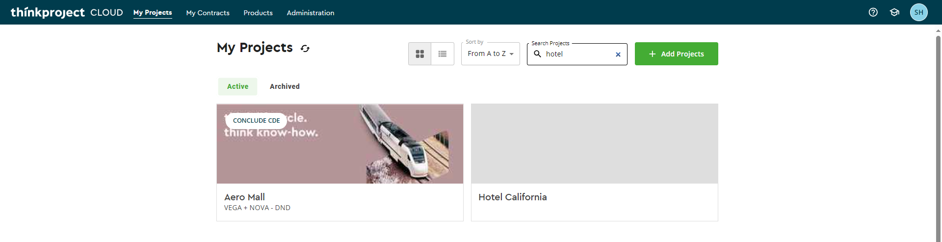 You will notice that the search now returns not only THINKPROJECT projects which match the search term but also THINKPROJECT projects which have connected projects which match the search term.