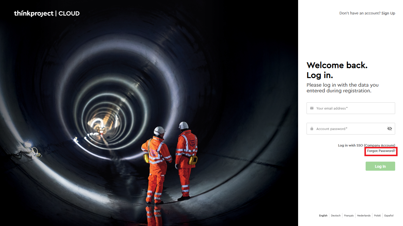 If you have forgotten the password to your Thinkproject CLOUD account, it is possible to receive a password recovery link and set a new password.