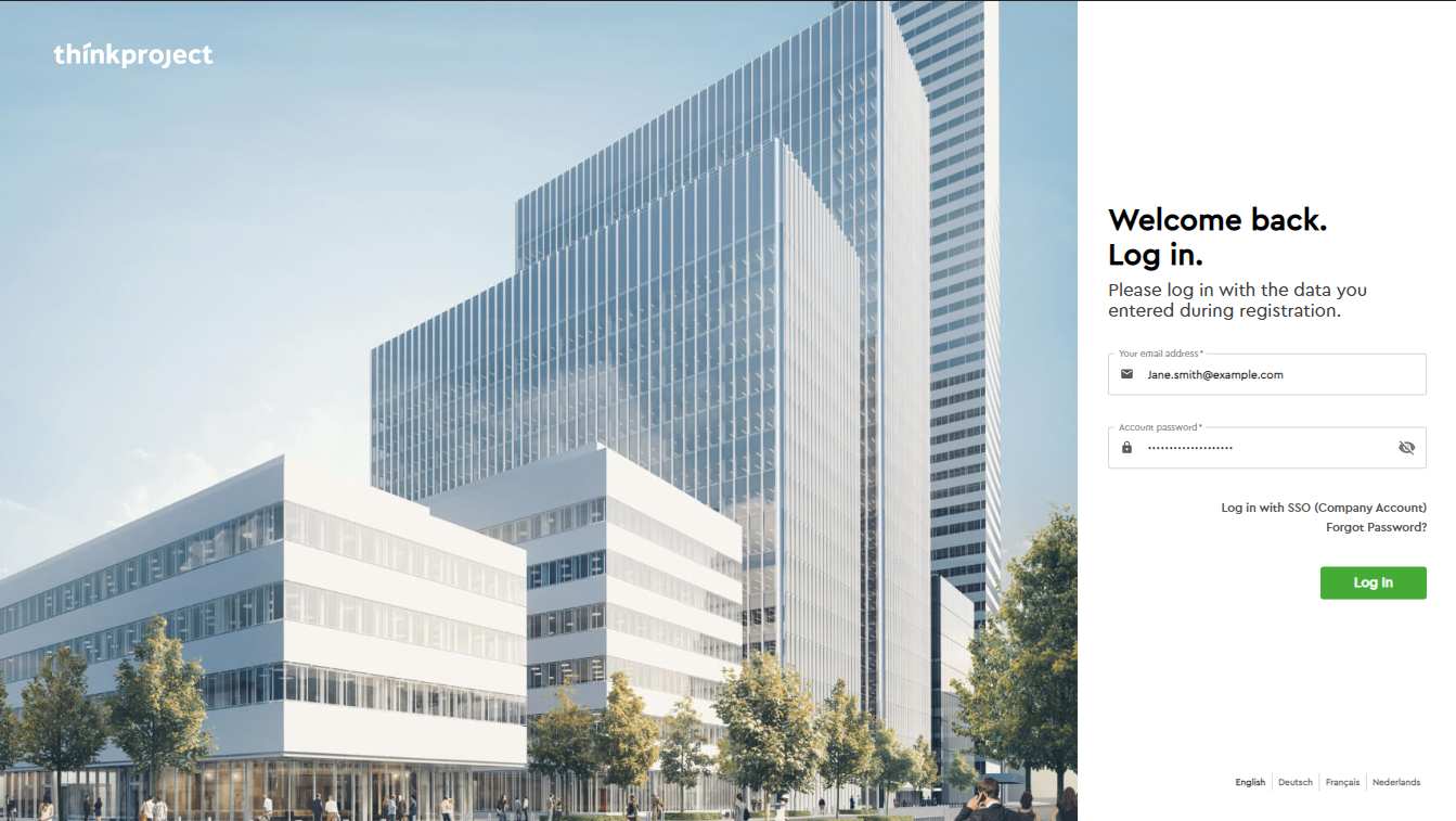 To do this, log in using either your known login credentials for either product or at cloud.thinkproject.com.