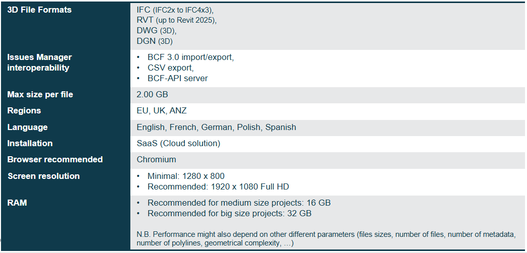 This page outlines the technical specifications and system requirements necessary to ensure the optimal performance and compatibility of VDC COLLABORATION app.
